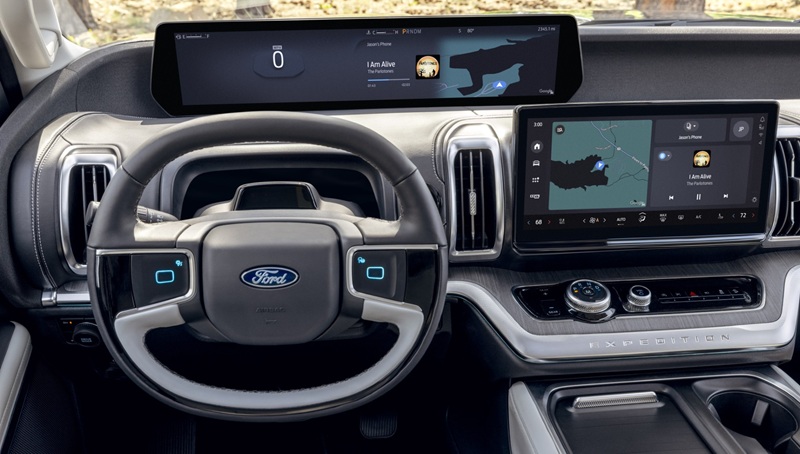Ford rediseñó el pasado 2025 el sistema de infoentretenimiento de la Expedition. Equiparon al SUV con una pantalla táctil de 13,2 pulgadas (33 centímetros) en el centro del tablero y un amplio panel de instrumentación digital de 24 pulgadas (61 centímetros). En lugar de colocar esta pantalla larga detrás del volante, la sitúan más arriba y más cerca del parabrisas para mantener los datos clave de conducción dentro de la vista delantera del conductor. Este diseño inusual pero vistoso elimina la necesidad de una pantalla frontal o HUD separada, pero requiere un volante plano y compacto, lo cual resulta poco convencional.