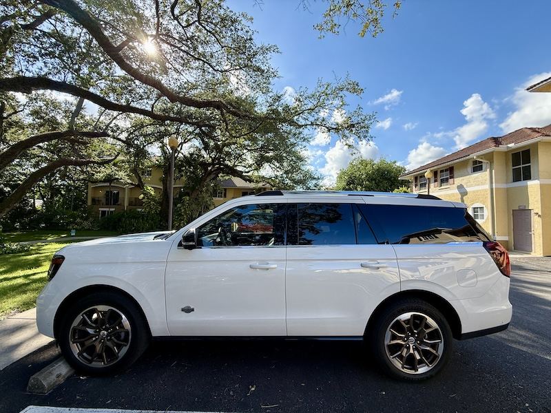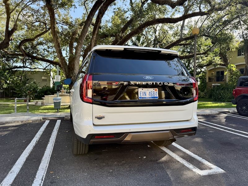 El color Star White Metallic Tri-Coat que aparece en esta unidad de prueba es opcional (por $895) y le da un toque elegante, especialmente bajo la luz de Miami, donde la Expedition se siente en su hábitat natural: las amplias avenidas y los viajes largos en familia.