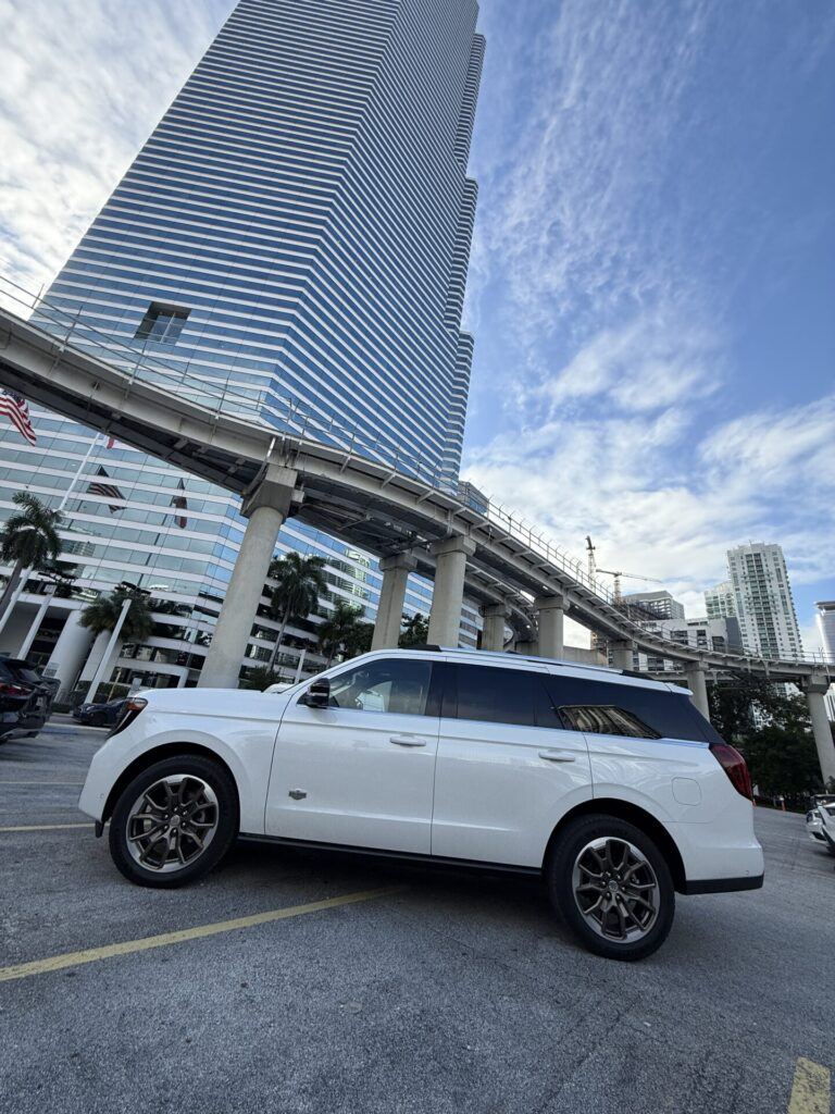 En Miami, donde el terreno es plano y las autopistas permiten velocidad constante, la Expedition se siente serena. La suspensión adaptativa y el sistema de control de amortiguación variable absorben las irregularidades del asfalto con facilidad, mientras la tracción 4×4 inteligente distribuye el par con precisión en condiciones de baja adherencia.