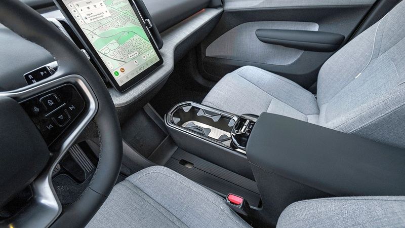 Volvo ha seguido la senda de Tesla, concentrando casi todas las funciones en una sola pantalla vertical de 12,3 pulgadas o 31 centímetros, que sirve tanto de infoentretenimiento como de pantalla de indicadores para el conductor. Desde esa pantalla donde la mayoría de los gráficos son diminutos y no muy bien diseñados, se controlan todas las funciones de clima y audio, ajustes de conducción como el manejo con un solo pedal, la posición de los espejos retrovisores y hasta abrir la guantera.