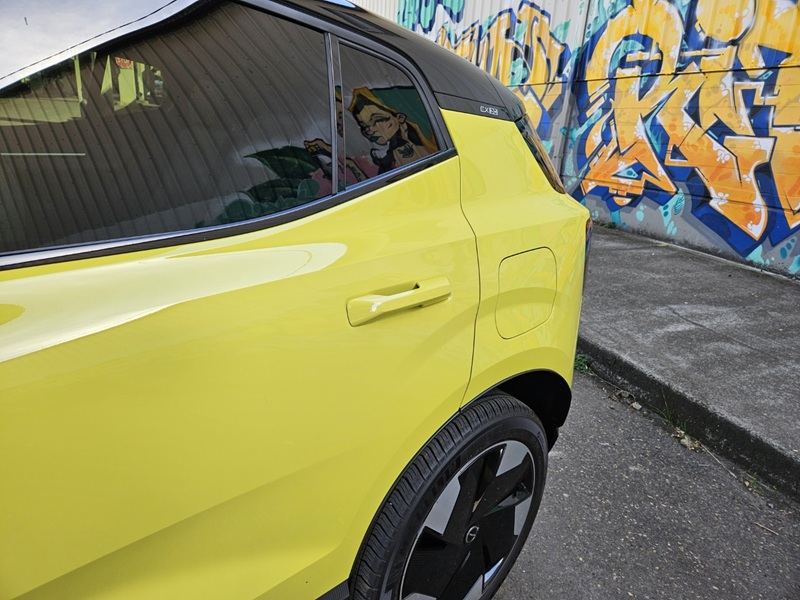 El Volvo EX30 tiene el mismo aspecto premium que los otros SUV eléctricos del fabricante, pero mirado de perfil, expone sus dimensiones pequeñas, aunque fornidas, que son parecidas a las de un hatchback compacto. Las ruedas de radio anchas de dos colores y el techo de color contrastante crean una postura fantástica y un aspecto limpio y moderno.